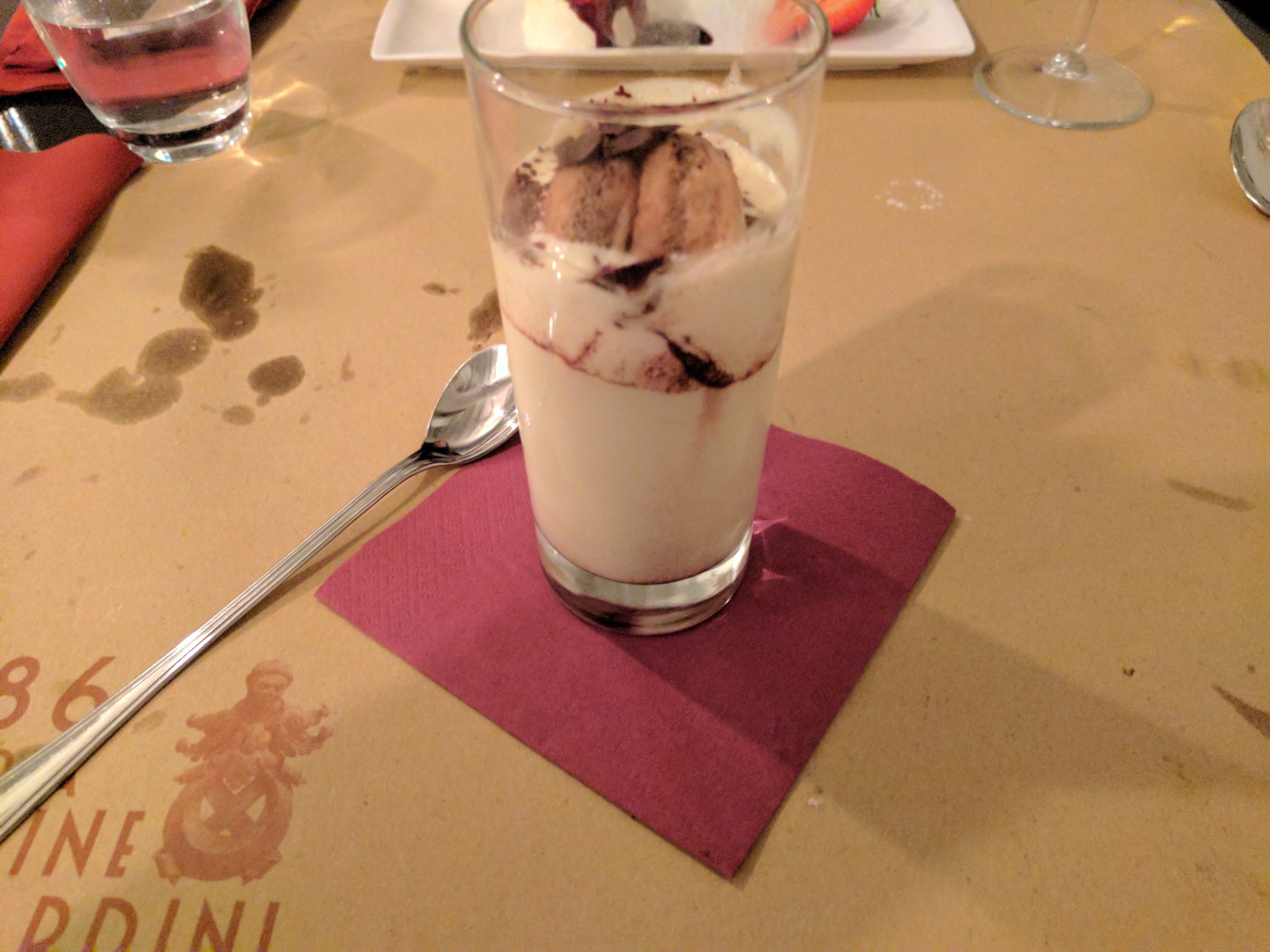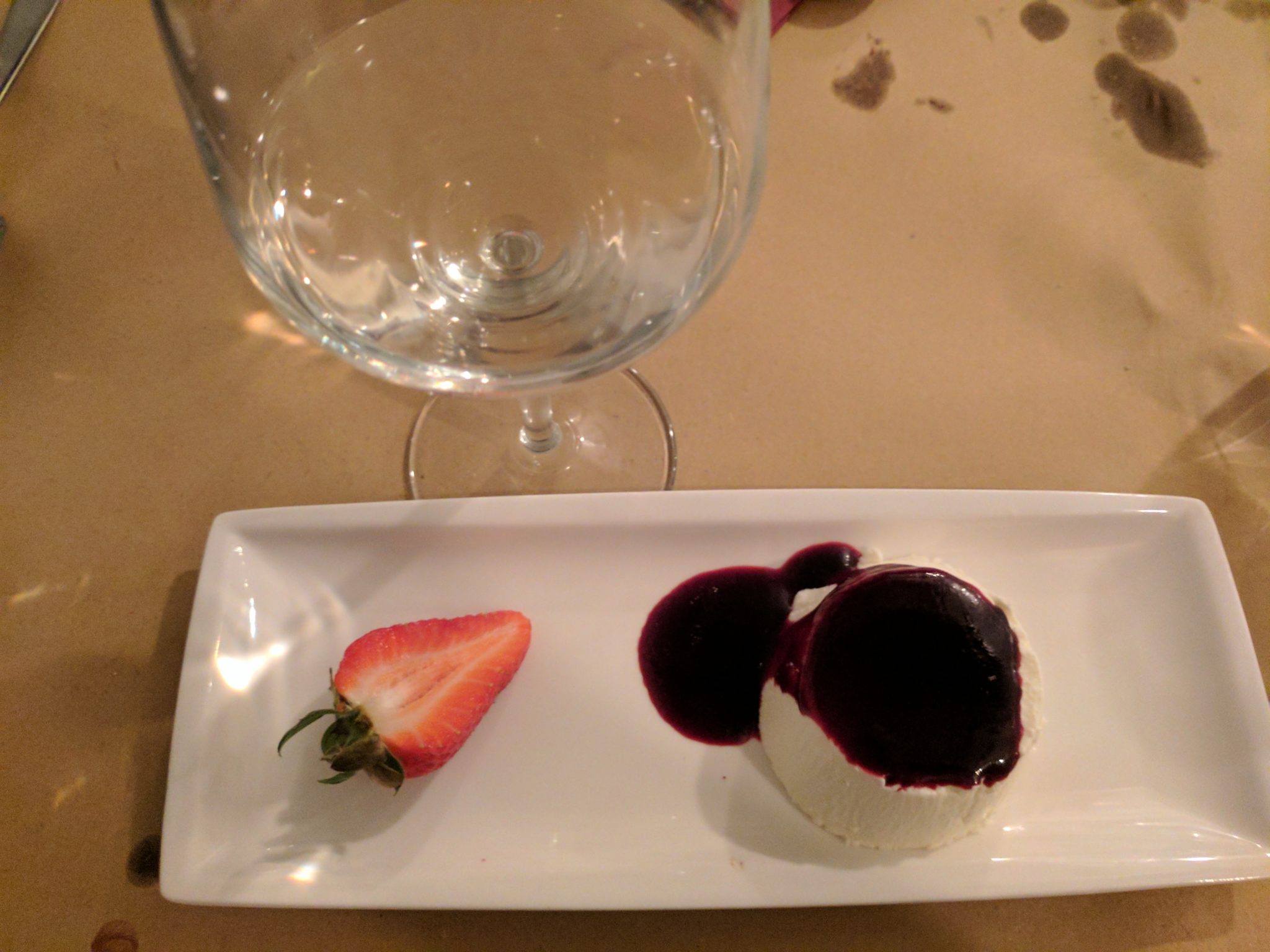 The ravioli was just wow. I’m serious. It was so delicate and flavorful. It was just sooo good. The meat was delicious and did not disappoint. I was already full, but I also tried the veggies, that were well-seasoned. Roman never gives up dessert, so he ordered a tiramisu and I got the panna cotta with fruit syrup. We loved the desserts. The panna cotta was light and tasty, and Roman claimed that it was the best tiramisu he has ever had. Of course, I forgot to mention, we ordered some wine and it was fantastic.
