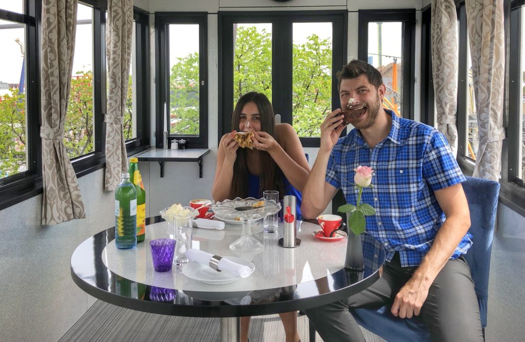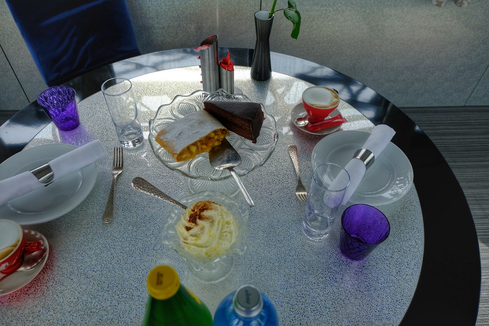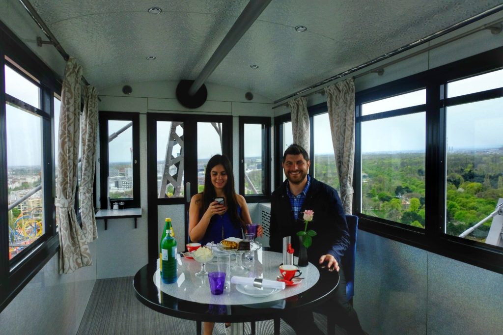 The wheel offers a city-wide view, which is very enjoyable to watch while drinking a coffee and eating cakes. Of course, we had to document these moments for the blog, so unfortunately most of our time was spent on filming – but the coffee and cakes were of high quality, the view was amazing, and it was honestly quite nice seeing the people in the other cabins looking at our table enviously.