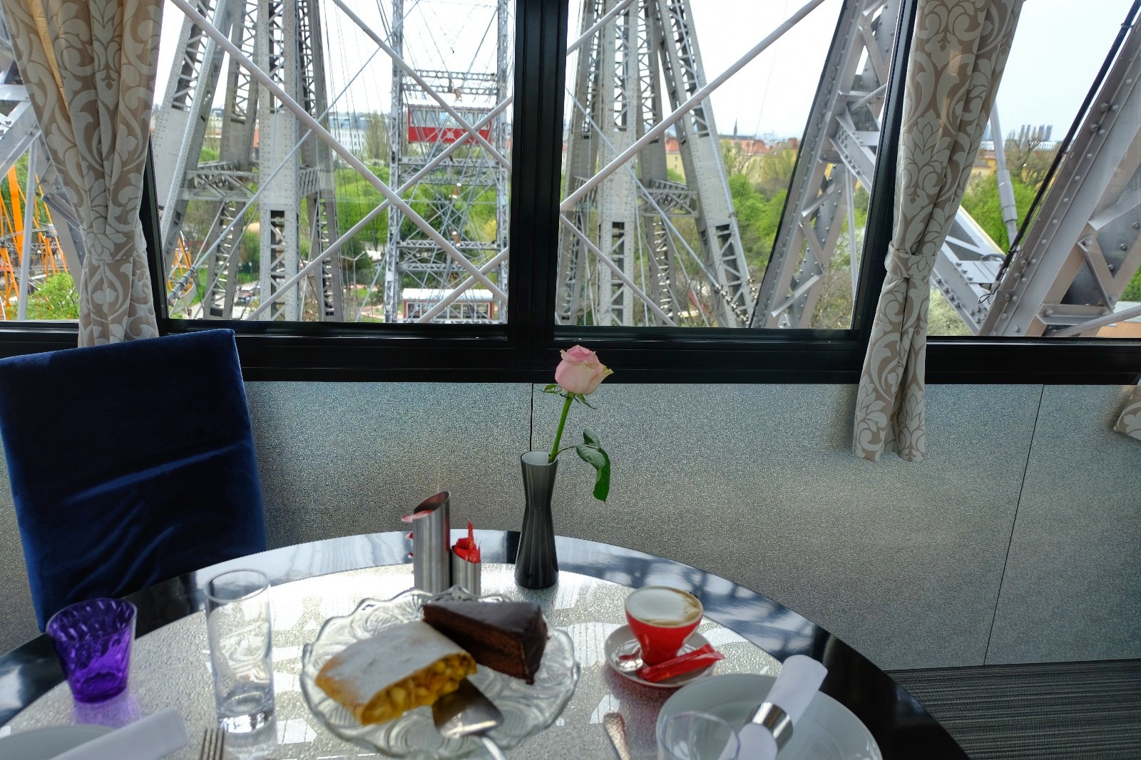Before going on our Vienna trip, I looked up what sorts of special attractions the city has to offer. I’ve come across many possibilities, but one stood out as especially unique and luxurious, and as something we’ve never done before. That attraction was coffee and cake in a private booth on the giant Ferris wheel in Vienna.