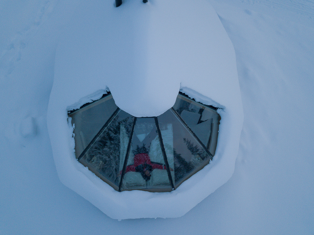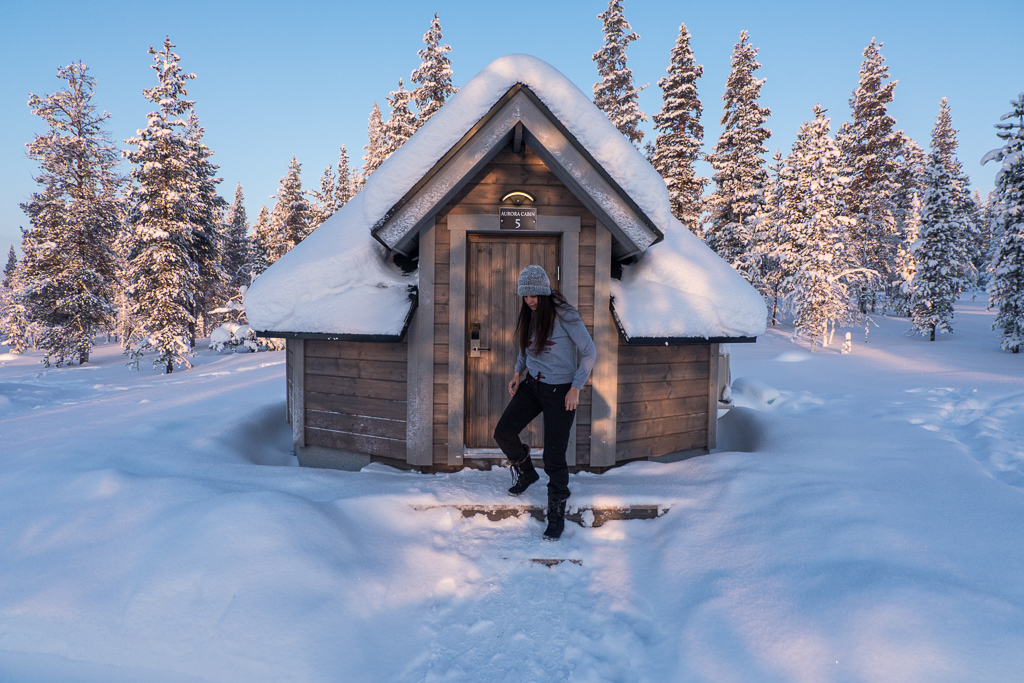 Anyhow, we arrived at the cabin with our suitcases and felt like we were in a dream! The cabin is basic in terms of furnishing, but honestly you don’t need much more at a place like this. The roof was covered with snow at first, so we didn’t see what was going on outside, but after melting the snow (Using a special button), a magical, white landscape was revealed to us.