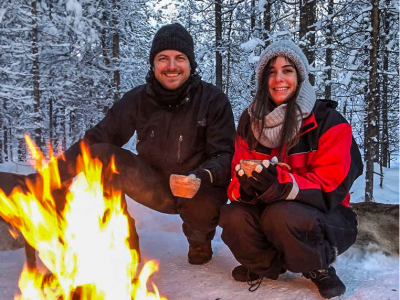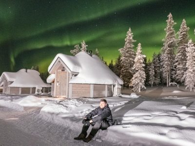 Our trip took place in late January – early February and in the cabin area the temperature was around -20 degrees. Basically, you do not have to bring too much hot equipment to the cabins themselves, because you can get massive overalls there that are suitable for winter, boots and I think even gloves. But since we arrived as part of a trip to a number of other places besides the village, we came prepared with good boots, thermal shirts and pants, gloves (thin ones for mobile use and thick gloves), a neck warmer, scarf, wool hat and thermal socks. In addition, my tip is to bring heating bags because it really helps. I did wear the overall as well, because I needed another layer, but Roman, for example, did not use the equipment they offered on location. Additional notes about the Northern Lights Village