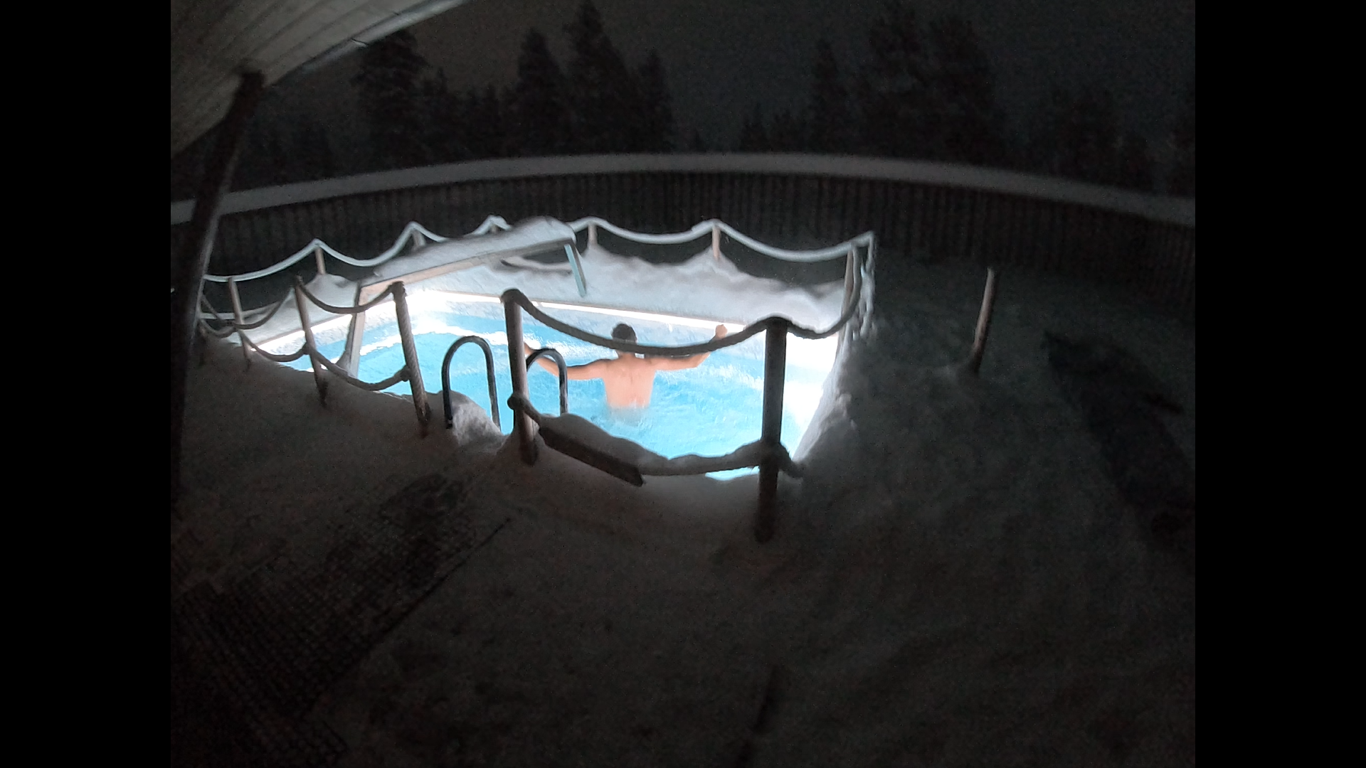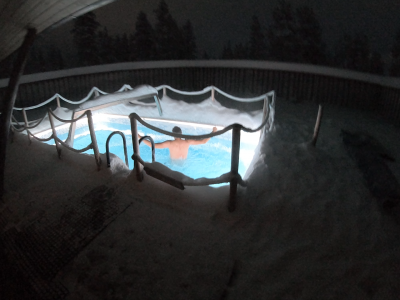 There is a dry sauna in the cabin compound and a pool of frozen water outside. Roman somehow collected the courage to go into the icy water after the sauna. I did not dare to do so for fear of dying 🙂 There is a dressing room near the saunas. Entrance to the sauna is at an additional cost (around EUR 10 per person) and there is also the possibility of renting the complex for an hour at a fee of EUR 100.