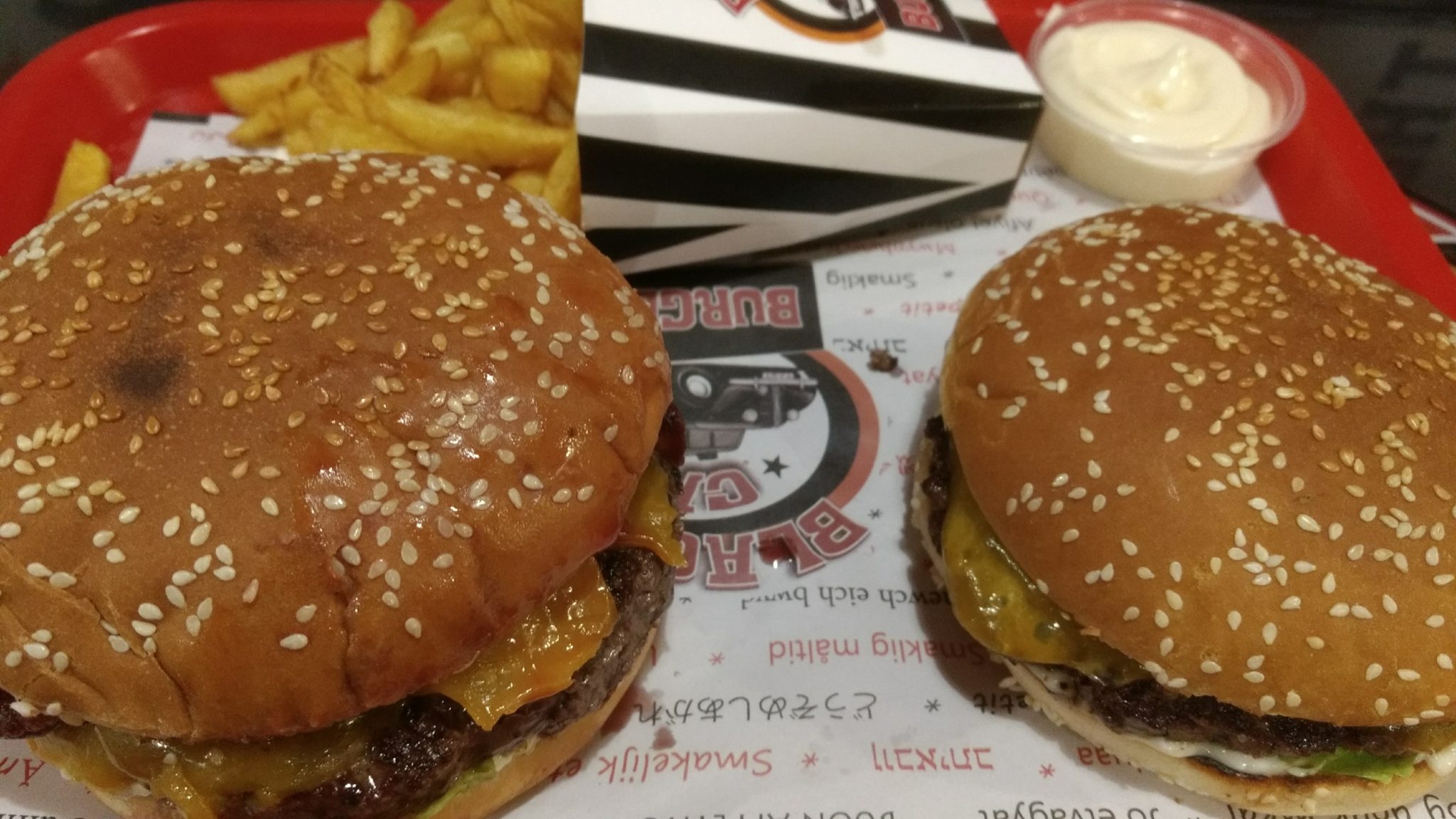 We ordered two hamburgers: one was 220 g and the other 300 g with toppings and one side dish of French fries.