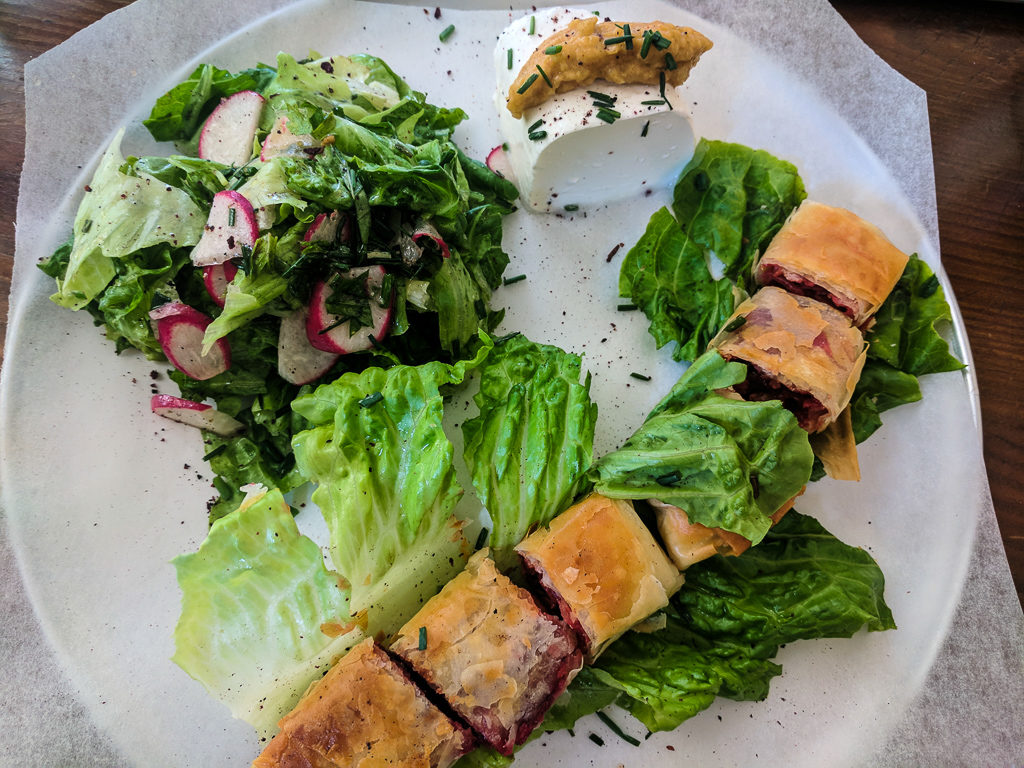The last time I was there I ordered coffee and a dish of filo pastry, stuffed with beet and a yoghurt on the side. It was a great dish, and I enjoyed sitting and working there.