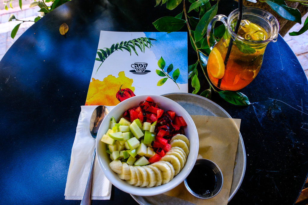 The menu includes healthy, super thought-out and delicious dishes. For starters I ordered the cold beet drink (Yes, it seemed strange to me as well, but those who like beets will love it). I went out to take a picture of it outside and within a minute two people stopped and asked me about it. You can order it hot or cold, I chose the cold version, as it was a summer day.