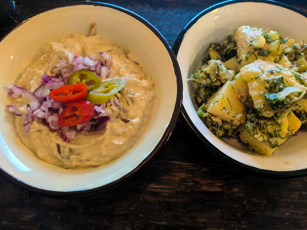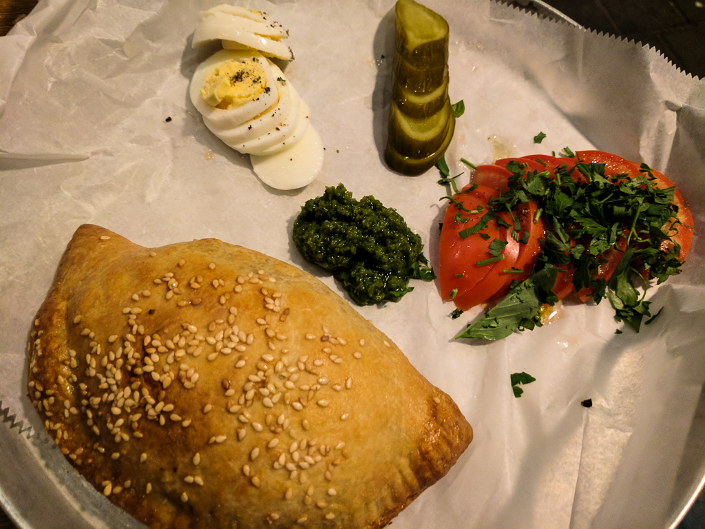 The dishes I like there are a sandwich with a tofu omelet and cashew cream, lentil and yam salad with fresh chili and Cheri tomatoes. Bourikas with cheeses and leek are great and Roman really liked Challah bread with egg (It’s simple but delicious).