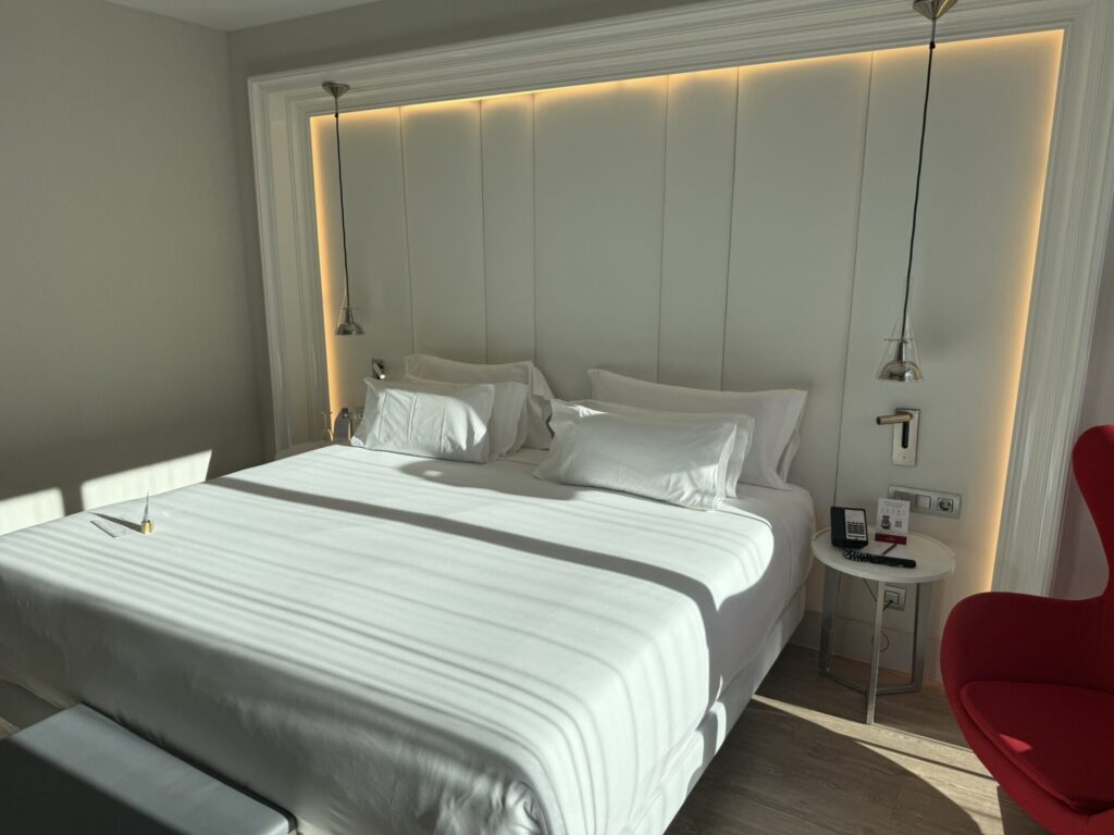 My mom and I stayed here for several days in late May and absolutely loved it. We’re not luxury travelers, so we appreciated that this mid-level hotel felt more luxurious than we expected for the cost. The valet greeter, the white marbled lobby, the fruit-infused water you’re welcomed with are all unexpected high-end touches. The bathrooms are more spacious than many European hotels, and the restaurant offers a wonderful breakfast buffet. The hotel has a private parking garage, a huge asset for people like us who had rented a car for a longer Spanish road trip.
