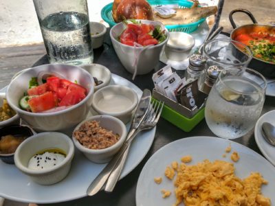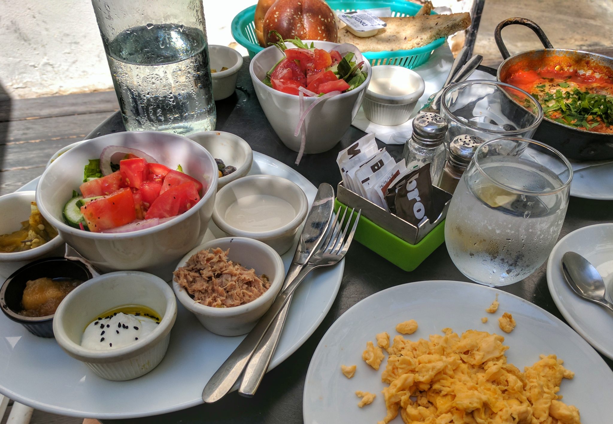 Breakfast is in the adjacent Loveat café, which has a special entrance from the hotel, and thus feels like a part of it. It isn’t a buffet meal, but a menu breakfast, offering Israeli breakfast food such as Shakshuka, sandwiches and more.
