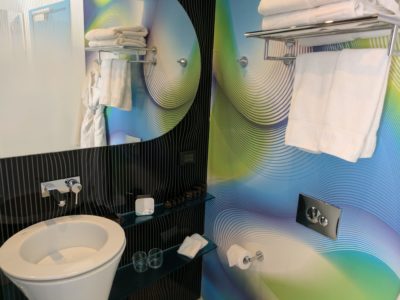 The hotel itself is done in a modern design, we felt like we were in a spaceship. The thing we liked best about it was the roof pool. While it’s relatively small, we enjoy pools a lot – our ultimate vacation is a cocktail in the pool, and the hotel fit that idea perfectly.