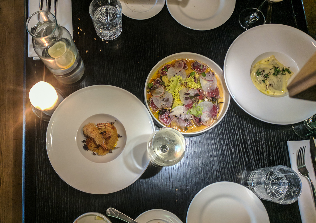 For starters, Michal and I decided to share three dishes. We ordered a ravioli dish (Made in-house), stuffed with meat in a truffle sauce, Tataki – which is a tuna tartar dish and a starter of three tiger shrimps wrapped in a Kadaif-like pastry. All three were so delicious I couldn’t stop eating. Eventually I gave up on the ravioli, as I knew I still had a main course to expect, and I was going to need to save space for it.