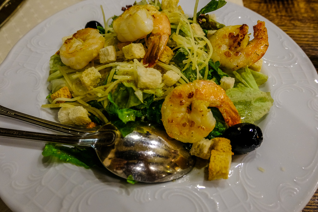 So, I can’t offer an opinion about the meat there, but according to reviews, it’s definitely worth a try. The starters were really good, we had Caesar salad with shrimp, herring and a salmon dish. As usual, we had white wine and truly enjoyed this meal. The prices are very reasonable, and it fits both lunch and dinner.