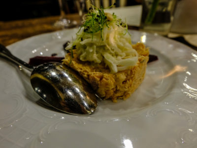 Our meal was a 4-course meal decided ahead of time, based on modern Lithuanian cuisine. After each dish was served, the chef came out to tell us of the food. The dishes were special and each one combined several flavors and ingredients. I can’t remember what each dish included, since it was so many different things, but I can tell you each one was delicious and beautifully served.