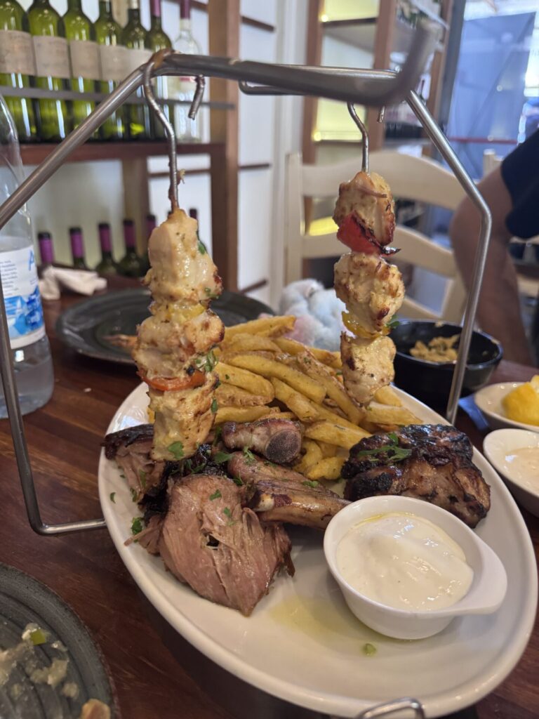 We have been to the Dionysus restaurant several times and every time I am excited about their courtyard, the food and the service. The restaurant is in a commercial area, but as soon as you enter the courtyard you feel peace and quiet. We ate an excellent fish dish and a dish of ravioli with truffles (served as a starter, but you can ask that they increase its size to a main dish, at an additional cost of course). Roman also ordered bone marrow and he really liked the dish (I’m less of a fan), and the lamb chops he ordered were also excellent. In short, a Greek restaurant that is worth a visit.