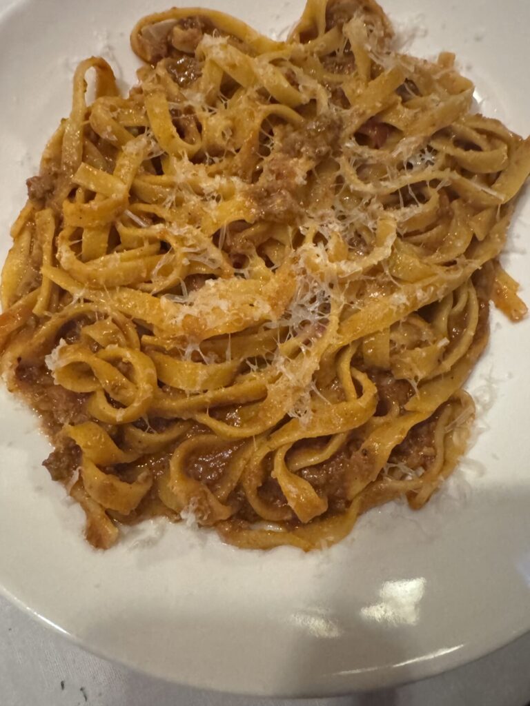 It’s also worth knowing that they offer a good-value set menu (available in the evening as well) for €23, which includes a starter, main course, and dessert. Not all menu items are included, but there is a good selection. We ordered one set menu in addition to the seafood pasta, and it was enough for all four of us (a couple with two daughters).