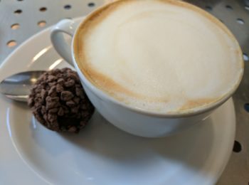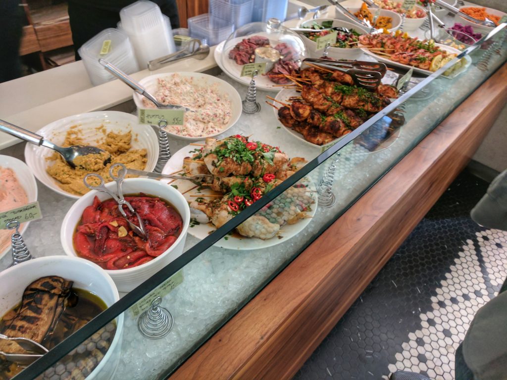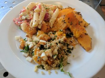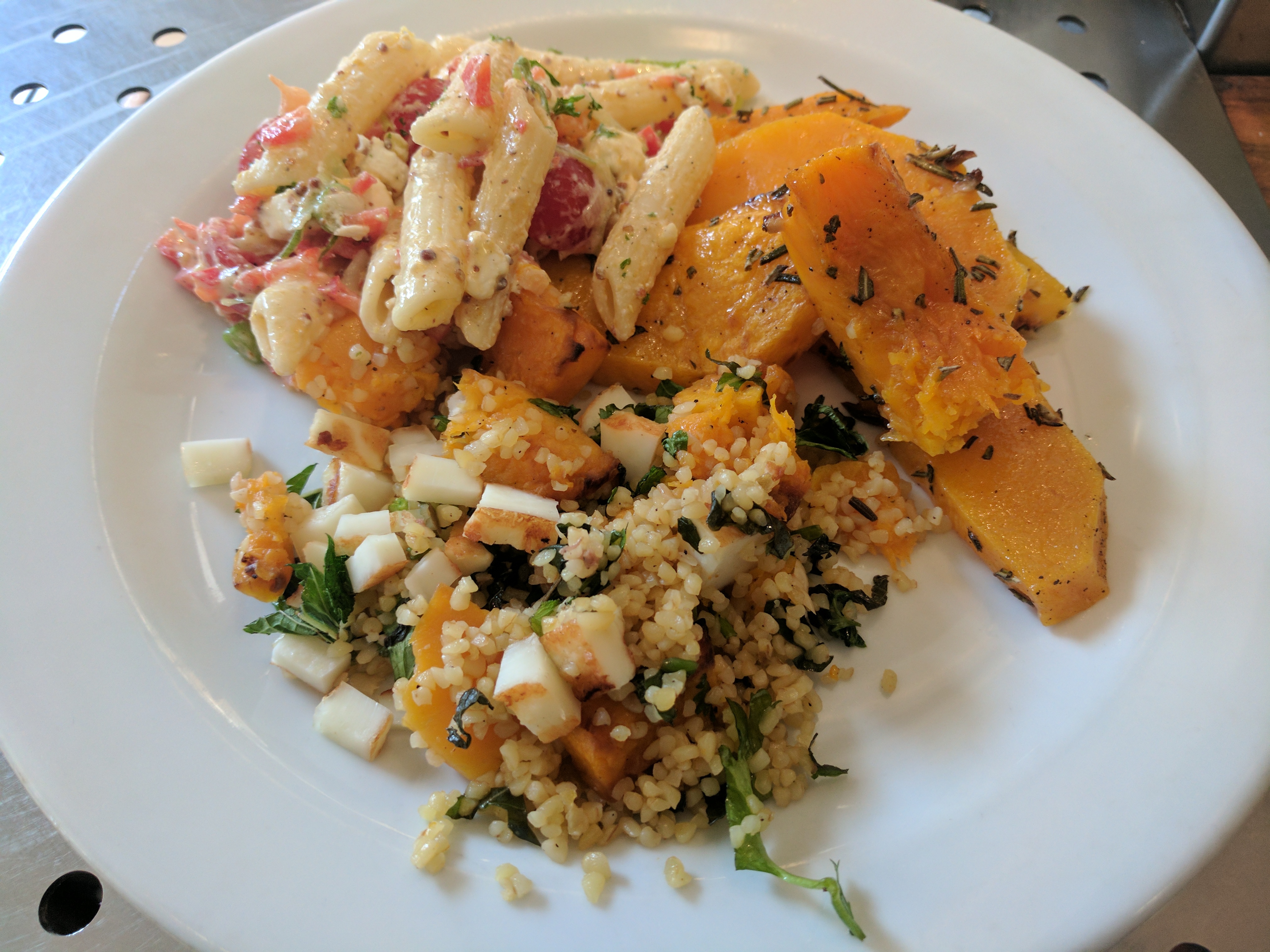 By the bike store, there was the Bake Shop restaurant with lots of options. There were ready salads and stews you could order from by weight and eat on the spot. I had a pasta salad and a bulgur and squash salad, while Roman had the pasta and roast beef salad. The price was reasonable and the dishes good. I topped it off with coffee with a chocolate ice-cream scoop.