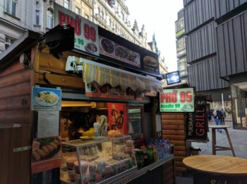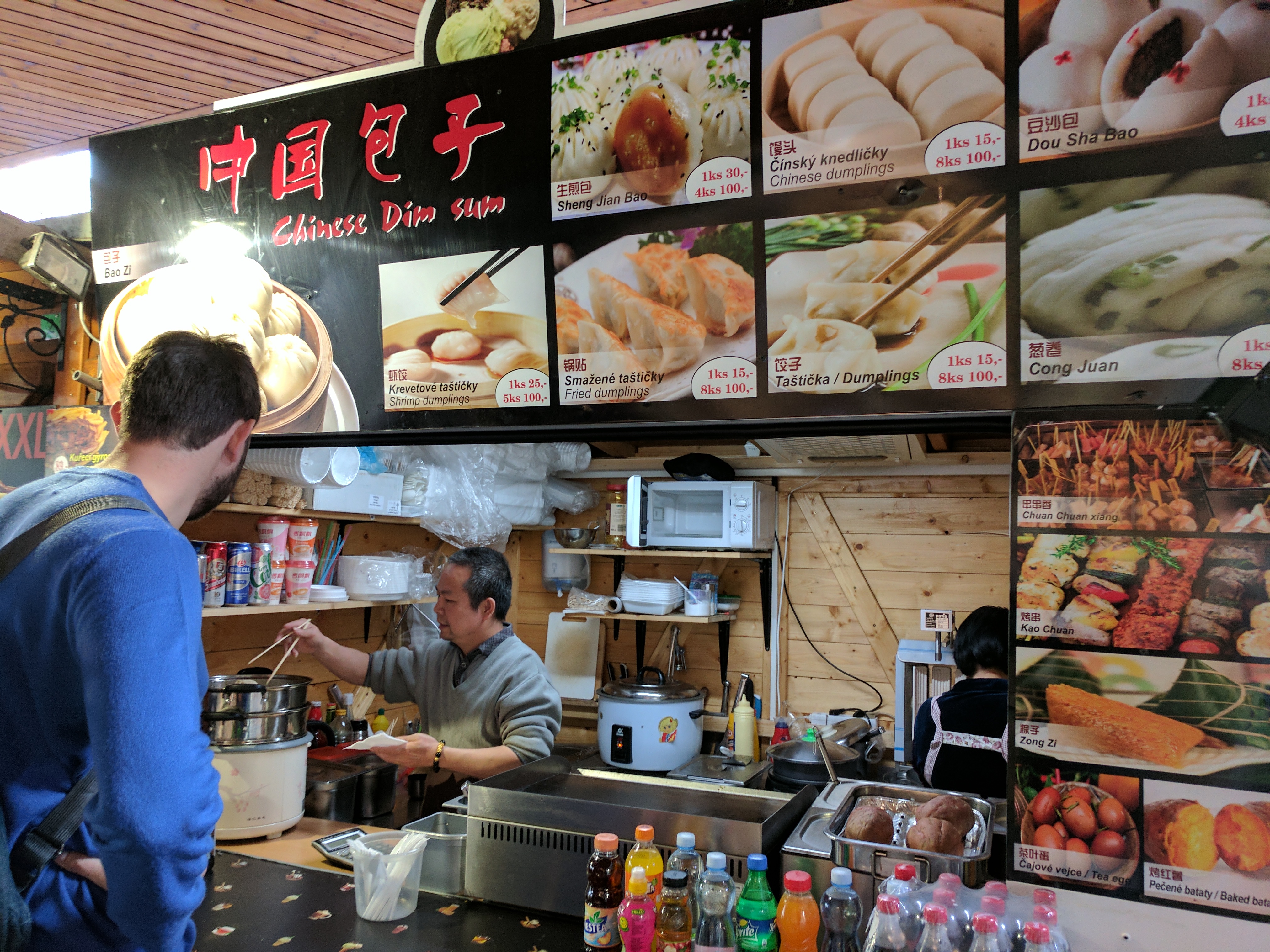 After our retro vehicle tour, we went for a stroll around the mall. As we were exiting it we noticed some nice food stalls, with Vietnamese and Chinese cuisine and Czech desserts. We decided to go for a snack from the stalls, Roman ordered Pho soup from the Vietnamese stall, which was very subtly flavored and would be a great option on cold days.