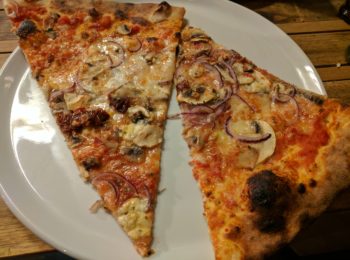 The crust was really thin, just the way we like it, with tasty cheese and great toppings. The pizza was so good Roman asked for 3 more slices and couldn’t stop eating it. It’s really addictive – consider yourself warned. This is definitely a great option for fast, delicious food on the cheap.