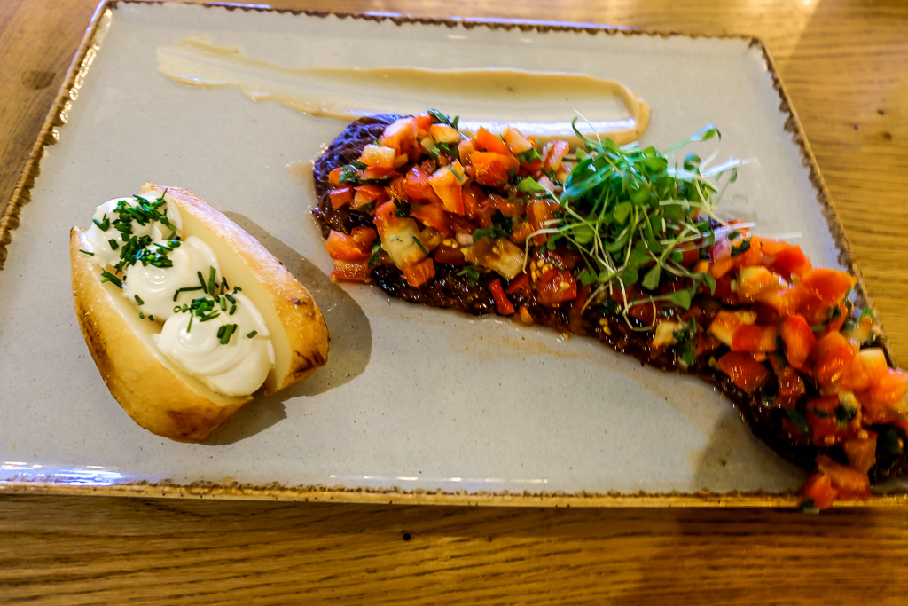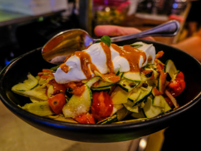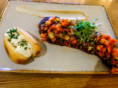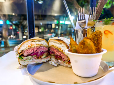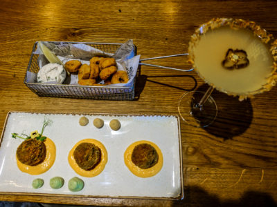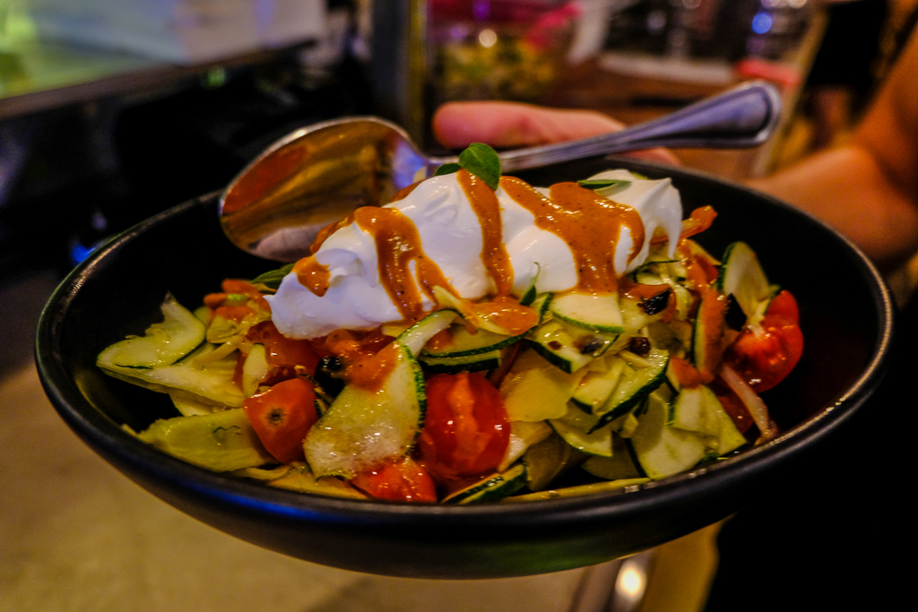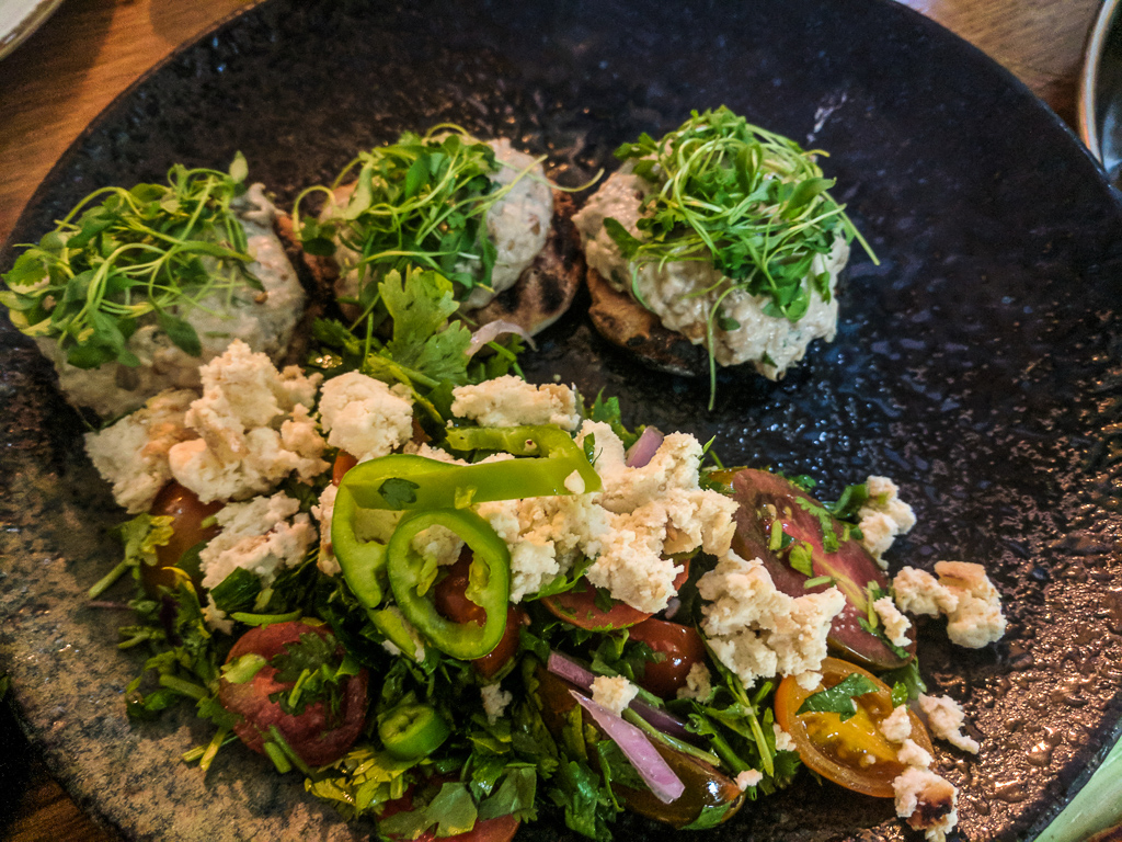 I tried two cocktails which were excellent, and what’s fun is that they make all the cocktail ingredients in house. There are no syrups or artificial materials, everything is made there. Now it’s time to discuss the food. So yes, it’s a vegan restaurant which isn’t everyone’s favorite, but let’s put it this way: If I didn’t know in advance that this is a vegan restaurant, I wouldn’t even notice it. I don’t know how, but the chef managed to recreate non-vegan dishes like Calamari and steak in a vegan dish which is identical in flavors and texture.