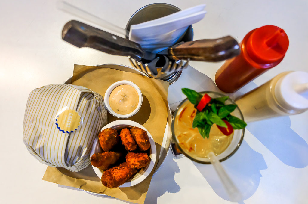 There are also double burgers and a burger of the month, and if you want something besides a burger there’s the “Not a burger” section where you’ll find wings, fries, jalapeno balls, sweet potato fries, salads and more. They also have a worthwhile business menu and the possibility to add another patty if you’re really hungry. Oh, and there’s a vegetarian burger too.