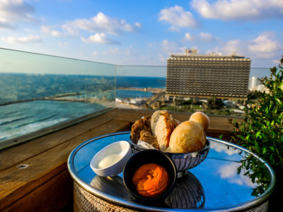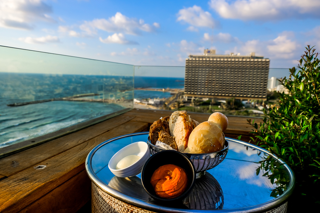 The restaurant is located on the top floor of the Carlton hotel, where you can enjoy an amazing meal with a view of the sea and of Tel Aviv’s skyscrapers (You can sit inside of the restaurant as well, but I of course prefer to sit outside, as the food, cocktails and view aren’t something you’ll want to miss). By the way, this restaurant is kosher.