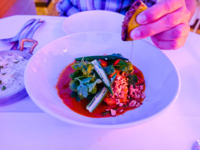 We ordered two cocktails which were amazing! We asked the bartender for cocktails with heat and sourness and not sweet ones, and he got it just right. For starters we ordered the Mediterranean frijoles and the locus carpaccio (I’m not listing what each dish contains as the list is endless :)).