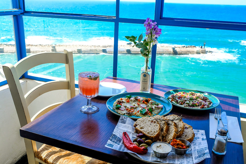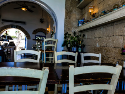 A Greek restaurant. This is one of the restaurants with the best view. It’s located just in front of the sea in Jaffa and has a very unique design, in a beautiful stone structure that’s nearly 500 years old, at the historical kikar kdumim.