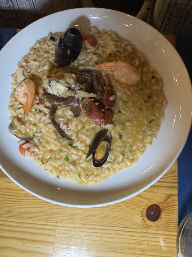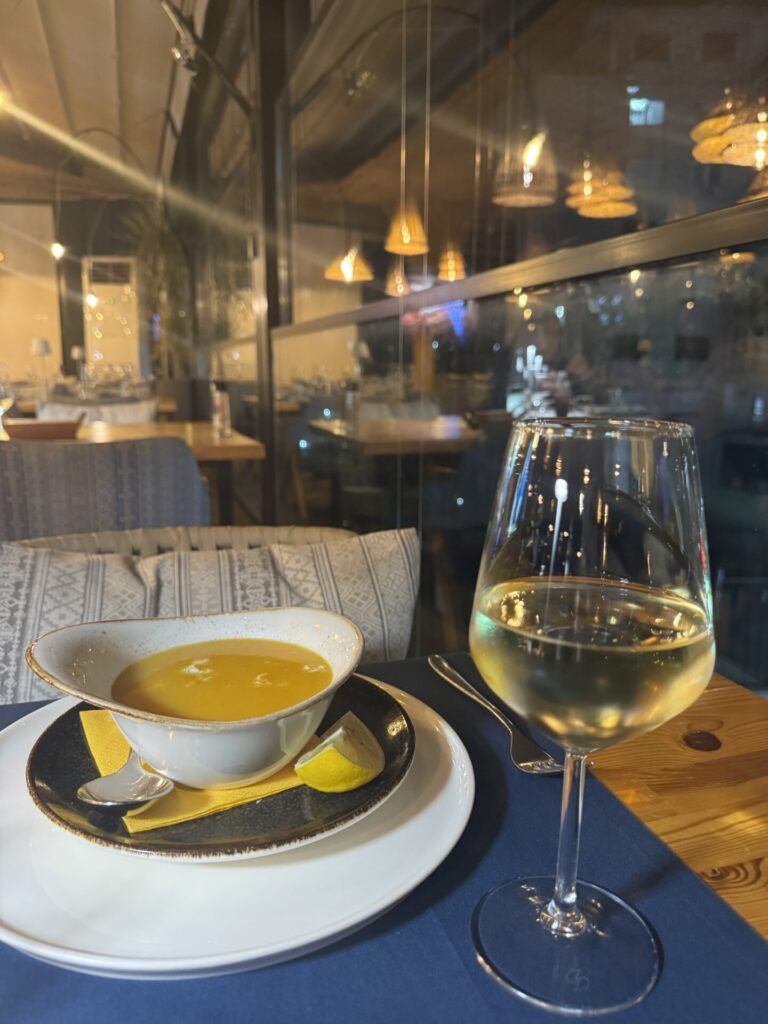 Blua fish restaurant is located on the 5th floor (with a kids’ playroom one floor below). Stylish décor, good service, and great prices. We ordered fish soup, seafood risotto, and grilled sea bass with vegetables, all delicious.