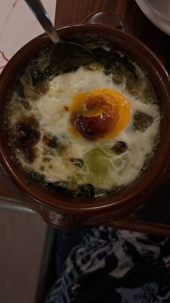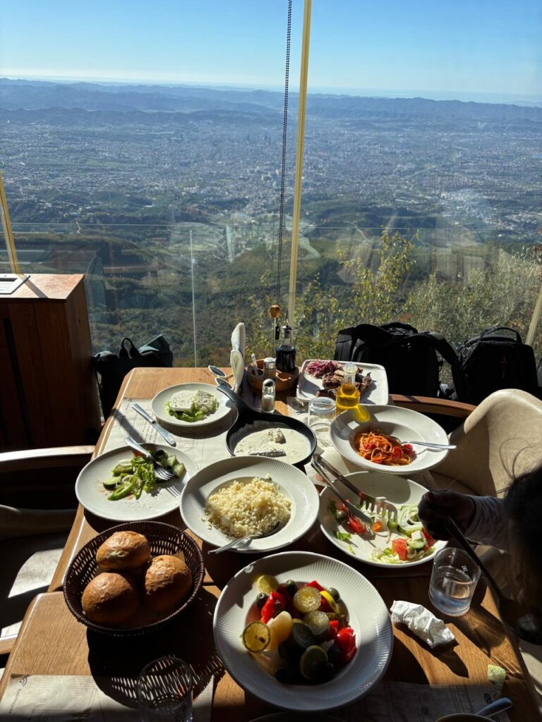 Dajti Balcony’s Restaurant is located at the top of the cable car, with traditional Albanian food and stunning views. We ordered about eight dishes, and the total was €55. The meatballs with tomato, onion, and pepper sauce were the highlight.