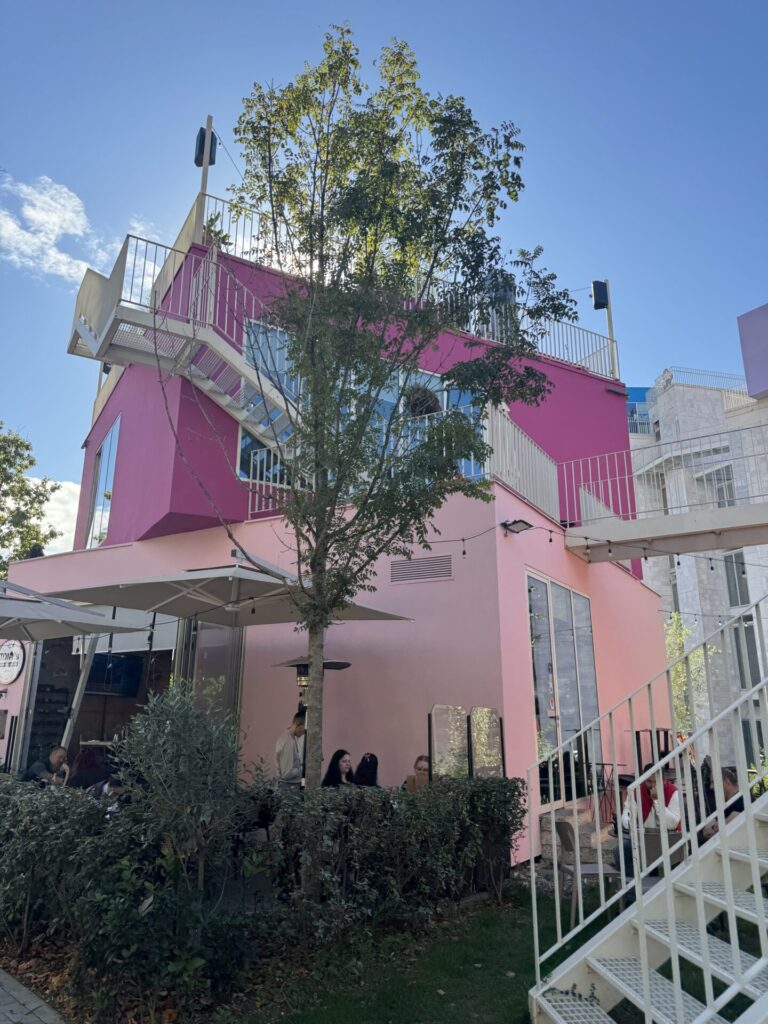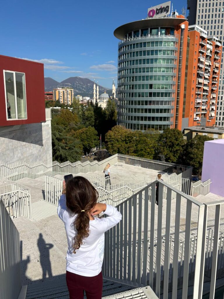 We stumbled upon this area by chance, and Maya was immediately drawn to the colorful architecture. The pyramid was built in 1988 as a museum for Enver Hoxha but has since been renovated into a cultural center. You can climb to the top for a great view. The weather was perfect, and we enjoyed exploring the colorful surroundings.