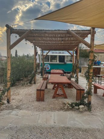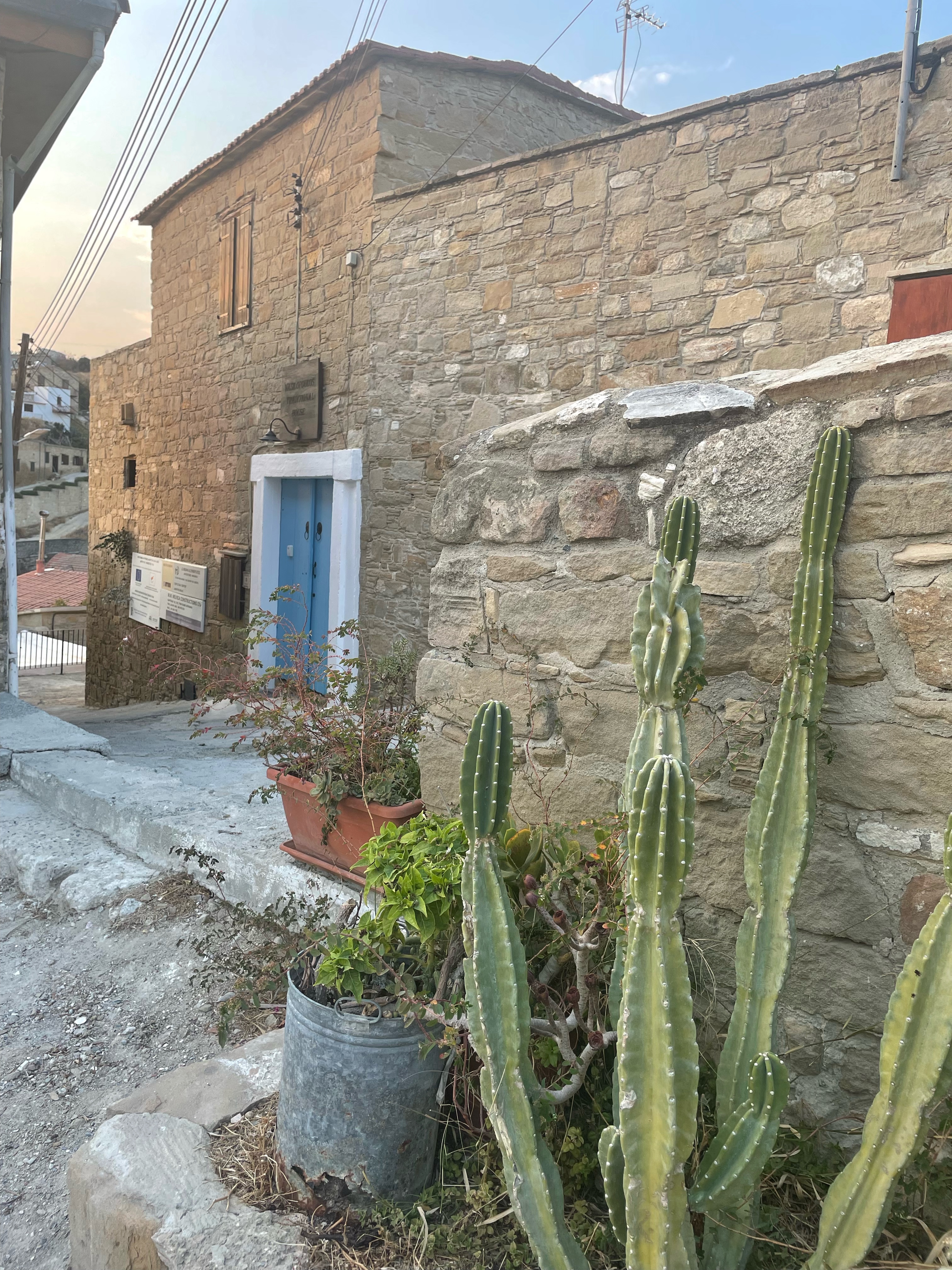 The village of Tukhni is located in the Larnaca province but it is just a 25-minute drive from Limassol. This village is very different from the other ones we have seen. Its architecture is not as colorful as Balfacra and Calabasos but more reminiscent of a medieval-style, with mostly brown tones and occasionally a bit of azure which is why we got excited about it. It has many narrow alleys and stunning views. There is also a coffee cart and a tavern that looks like a postcard because of its design and its view. You can also find some accommodations in this village. We plan to spend the night there at some time, so I will update you when that happens.