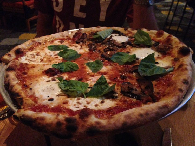 A thin pizza with a lot of cheese and a great combination of toppings. You can also take a slice take away instead of sitting in the restaurant if you want to save money and time (they make their specials also in take-away).
