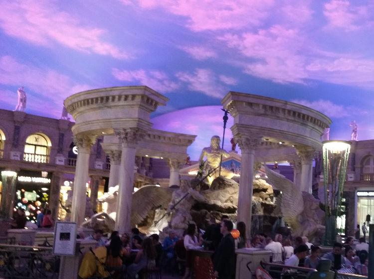 The hotel was built as an imitation of ancient Rome and it has so many spectacular statues from Greek mythology. It also has a big entertainment and shopping center called “The Forum”