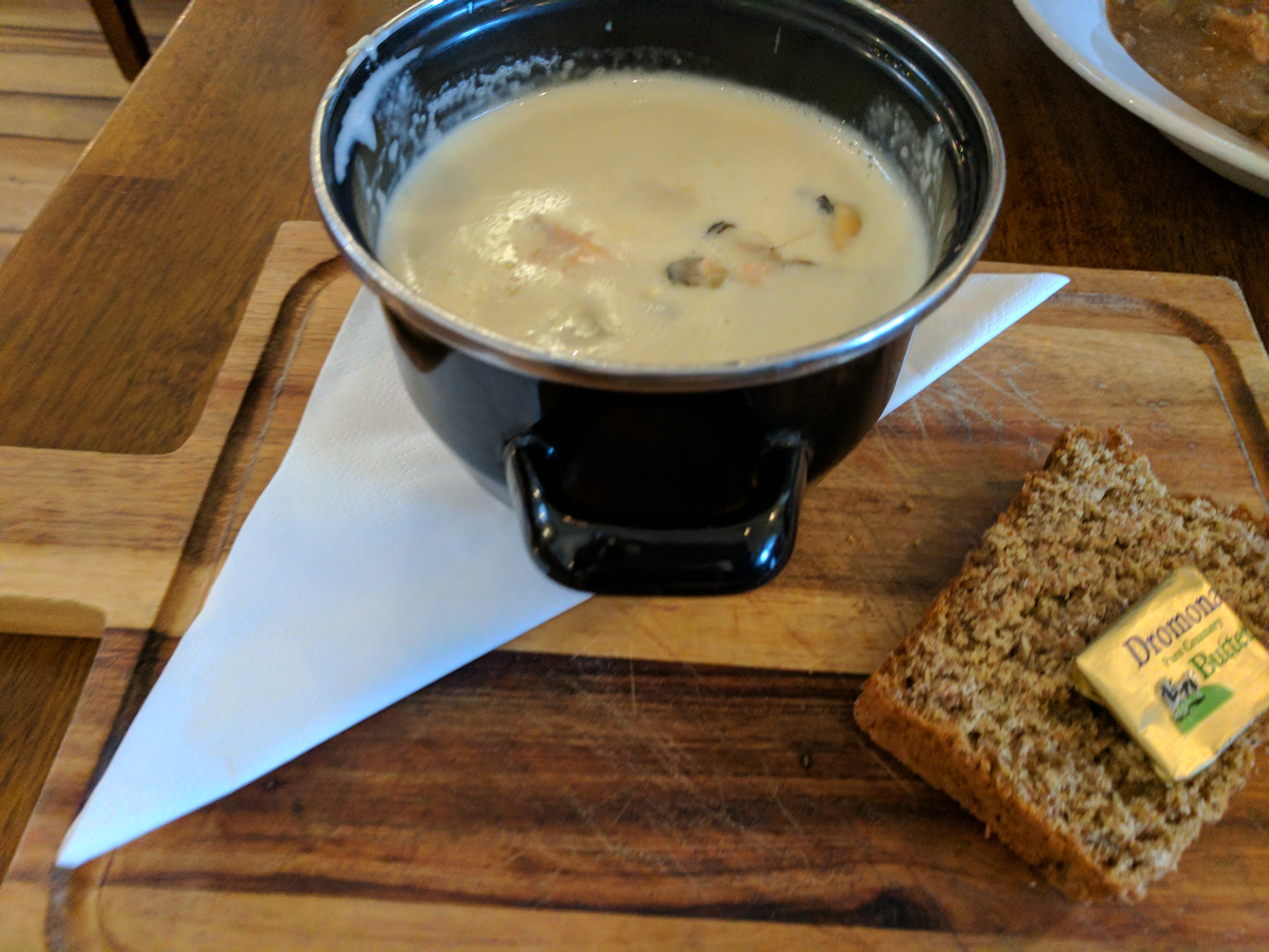 At the Giant’s Causeway, we ate lunch at Antik restaurant. It was really good, Roman had chowder (A traditional Irish soup) and goulash and I had an open sandwich with shrimp which was tasty and light.
