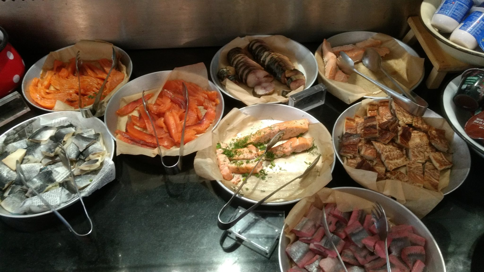 A huge variety of good cheeses, smoked fishes, salads, fresh bread and pastries, and much more. They serve you a great coffee. This is the way to start your morning.