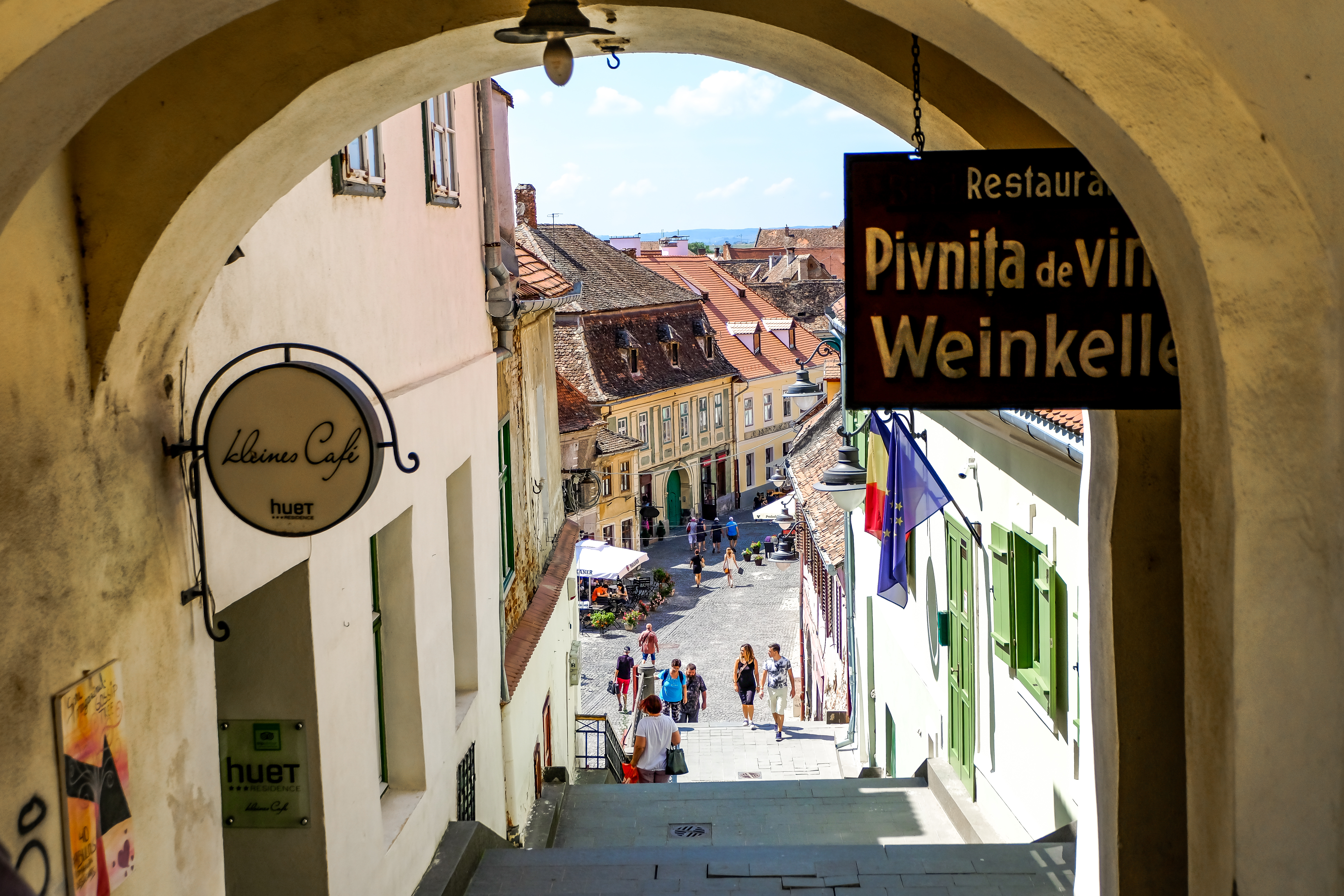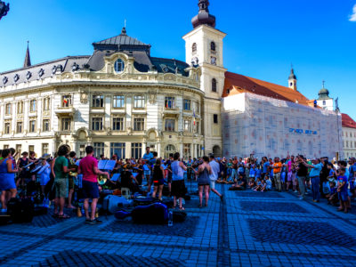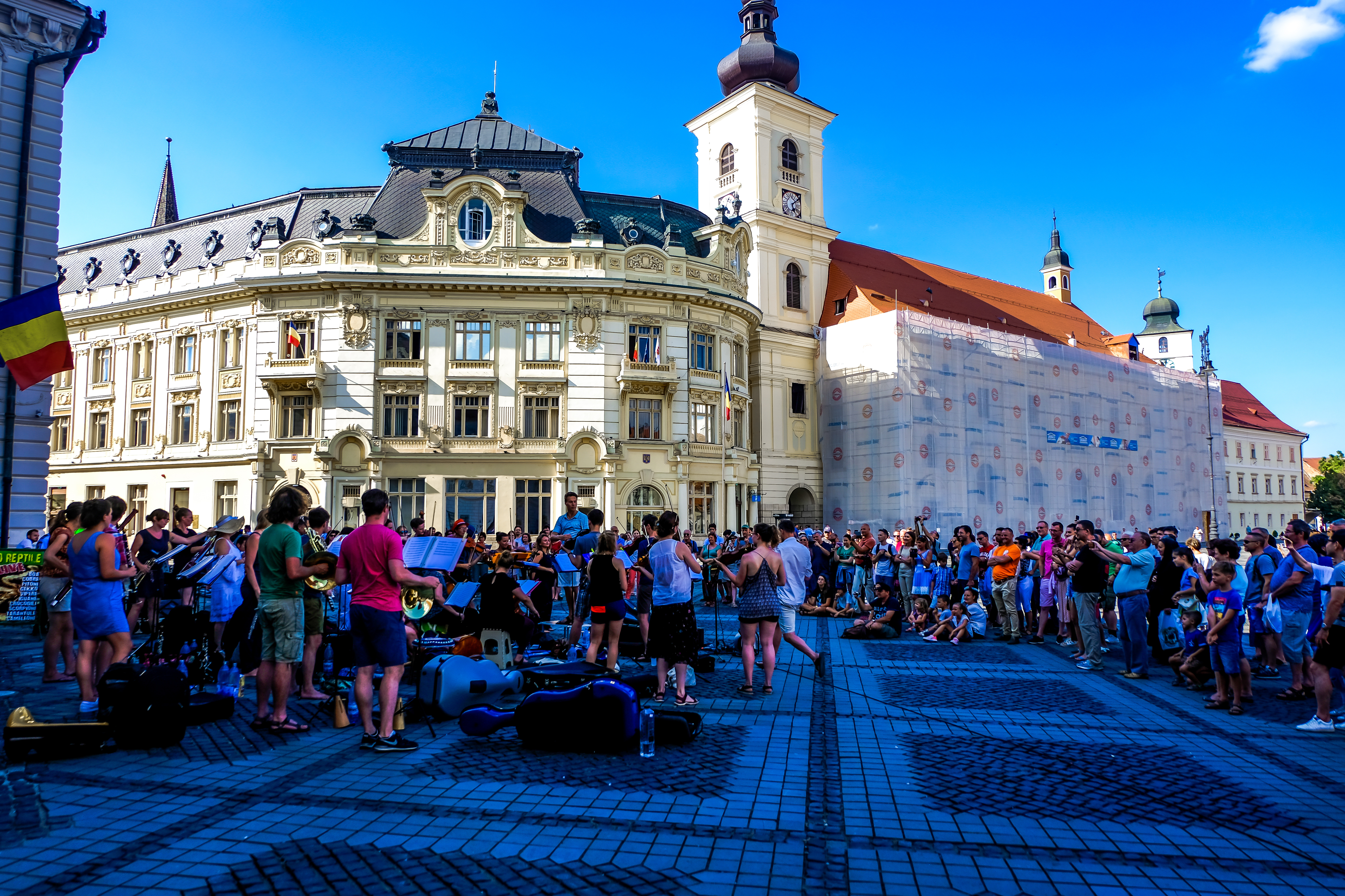 At Sibiu’s main plaza you’ll find restaurants and cafés, as well as street shows. While we were there, an orchestra was playing, and it was really beautiful. (Map)