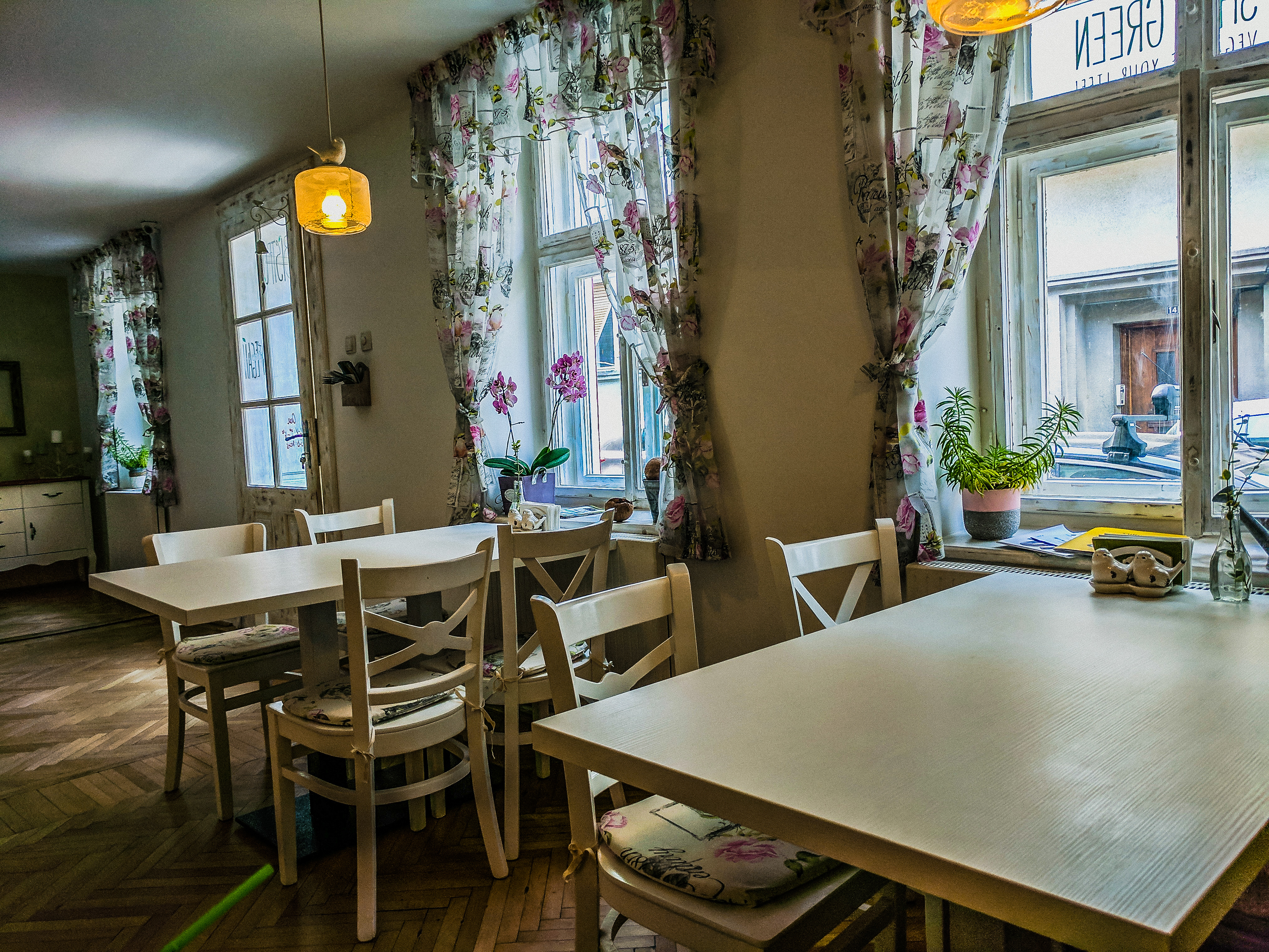 Another place I liked is a vegan café-restaurant, She’s Green. A café with a sweet design and a special, tasty vegan menu. We ordered an almond based soup there which was really good. We told them we’ll share it and they split the soup between two plates (Very nice of them), for mains I ordered a pasta salad with avocado and Roman had a carrot pasta salad. The soup and mains were delicious and had a very unique flavour combination. (Map)