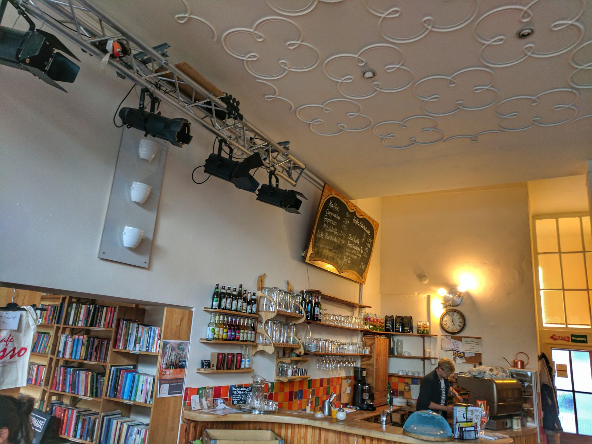 This coffee shop also has a selection of used books, newspapers, and magazines, and a place for intimate concerts. I went in the afternoon and discovered that sometimes in the evening they have concerts there, so it’s worth it to check it out.