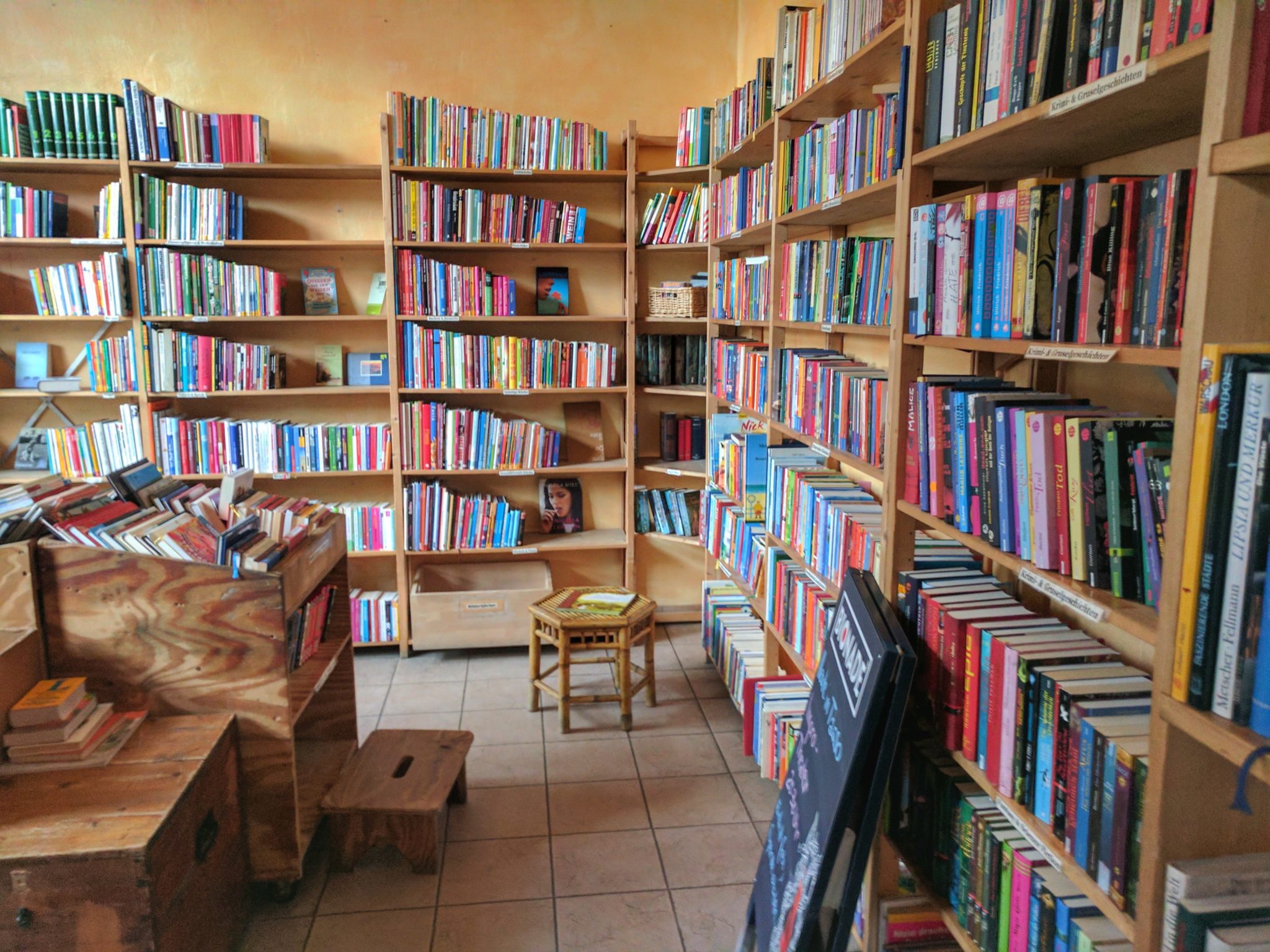 You can borrow a book or choose to buy one. There are two shelves with books in English. It’s a great place to go and just read a book. I ordered a Chai latte which was good and enjoyed the calm atmosphere. They also serve food and desserts.