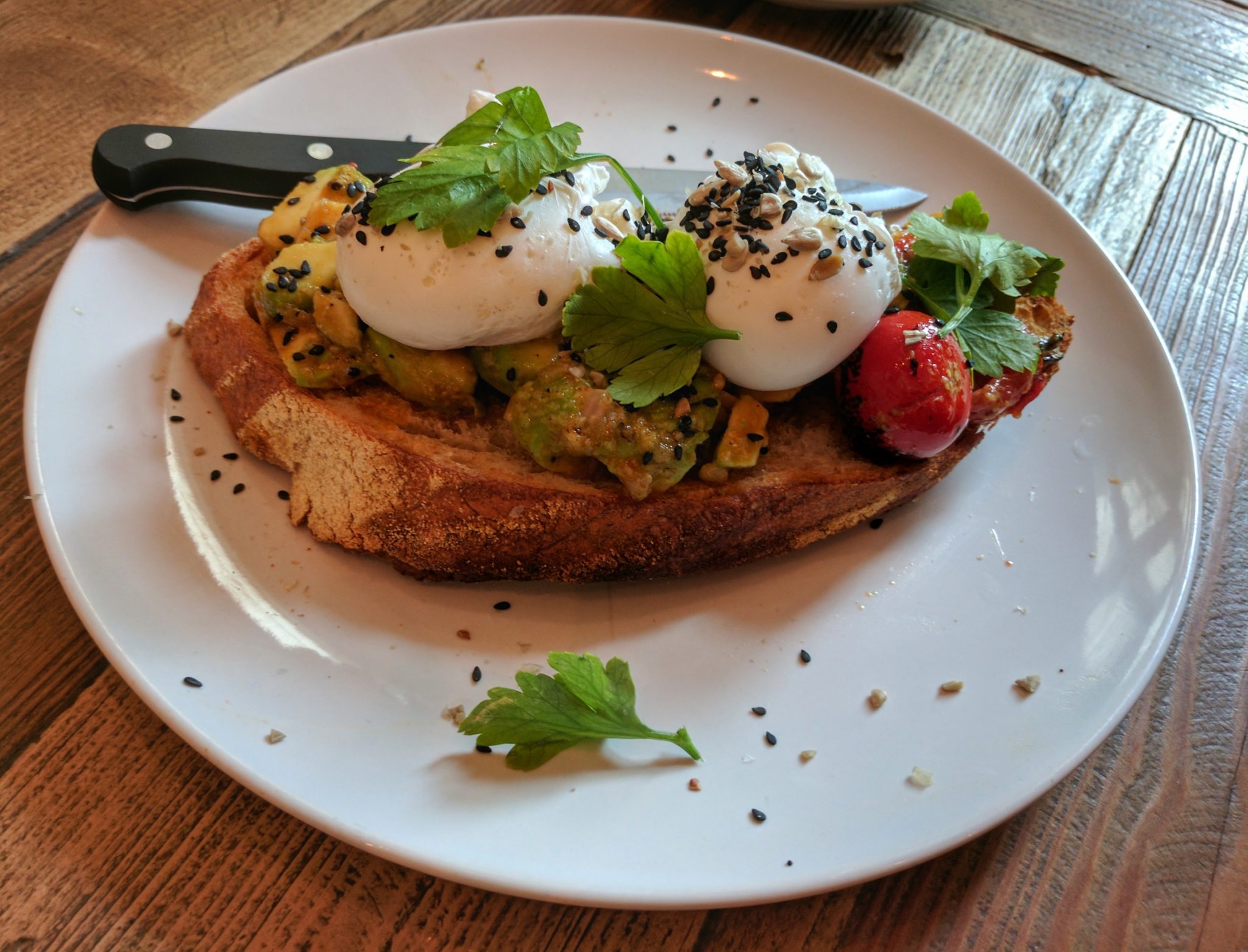There were other dishes which looked good, like poached eggs on toast and toasted brioche with apricot and cream. Next to me there were some guys who ordered those dishes so I asked them if I could take pictures in order to show them here 🙂 (so if you are less into healthy foods, there are some other good options).